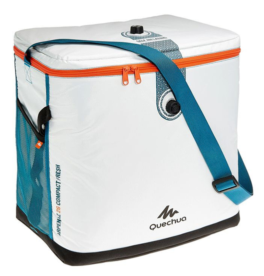 - mini frigo da viaggio, collegabile sia alla corrente elettrica che all’accendisigari dell’auto. Dal 2015 è inoltre disponibile un nuovo modello di ghiacciaia, molto più performante anche rispetto a quelle elettriche: si tratta della Borsa Termica Arpenaz Ice fresh compact (disponibile nelle dimensioni 16-26-36L).