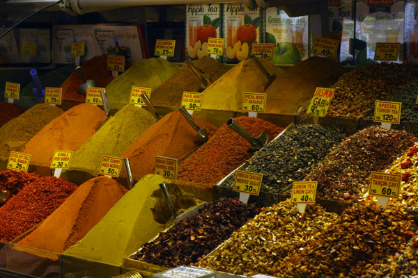 Il Bazar delle spezie, un’esplosione di rosso e giallo, verde e blu, come lo zafferano, i pistacchi e i datteri che vi si vendono.