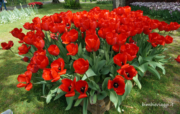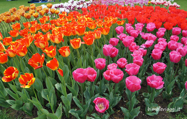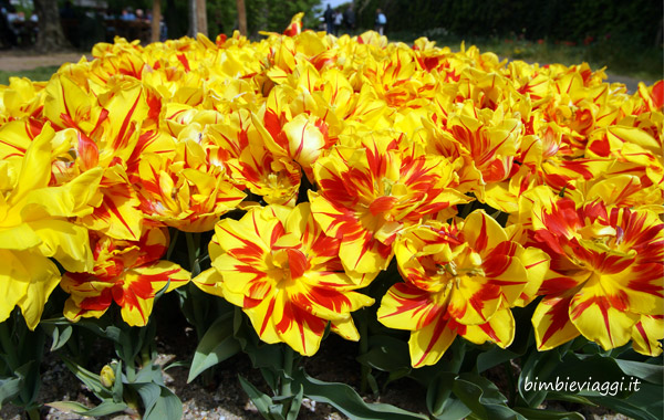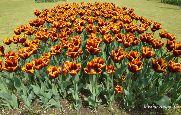 Di fronte a noi un’immensa distesa verde, un prato grandissimo ricoperto di quell’erbetta morbida che ti fa venire voglia di correre scalza e, a lato del parco, i tulipani, quelli “veri”!