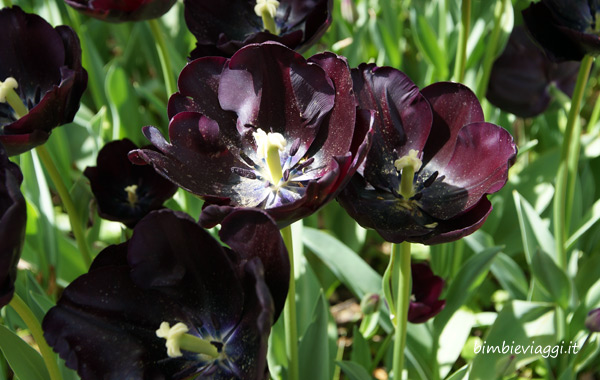Appena oltrepassato l’ingresso ci si imbatte nelle prime aiuole di tulipani: un’area relativamente piccola, ombreggiata, quasi interamente coperta di aiuole, ognuna stracolma di tulipani di ogni forma e colore.