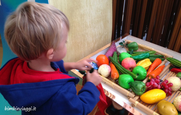 Per i bambini è molto carina la zona con le bancarelle ricoperte di verdura di plastica con cui possono giocare e fingersi venditori ambulanti.