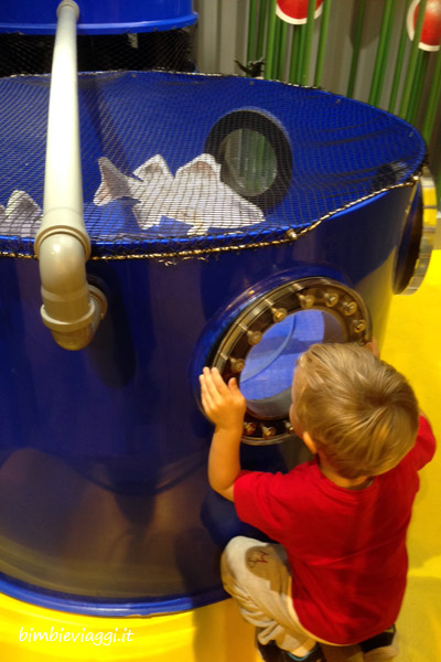 Ripieghiamo sul MAROCCO che si rivela una piacevole sorpresa. Al suo interno in ogni stanza si possono sentire diversi odori e profumi, da quelli delle spezie, ai boccioli di rosa, all’Argan e viene riprodotto anche il clima, caldo e ventilato nel deserto, fresco e asciutto in montagna. C’è persino la riproduzione del mare e Chicco si è divertito a correre tra le alghe.