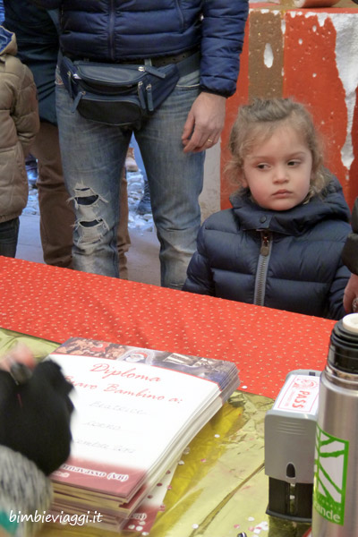 Anche noi ci abbiamo portato Chicco lo scorso anno, ma non siamo rimasti molto contenti soprattutto dell’organizzazione. Abbiamo fatto un sacco di code, la prima quella dal parcheggio auto per salire sul primo trenino che porta in centro al paese, la seconda per prendere il trenino che ti porta ai piedi del parco, poi mega arrampicata per arrivare alla zona cassa dove ritirare i biglietti (su internet li acquisti ma poi li devi ritirare alla cassa sul posto facendo coda anche lì…chissà poi perchè). La zona mercatini era costruita su una pietraia, quindi vi lascio immaginare la comodità di chi ha un passeggino. Altra coda per entrare nella grotta, che ammetto è molto bella e anche l’incontro con Babbo Natale per i bimbi è magico! Per pranzo noi abbiamo preso dei panini con salamella e li abbiamo mangiati nel tendone riscaldato per chi ha pranzo al sacco. Bello il recinto con le renne. Noi non abbiamo partecipato ai laboratori perché davvero troppo troppo affollati e Chicco piccino non sembrava comunque molto interessato. Naturalmente altra mega coda per riprendere i trenini per tornare alla macchina.