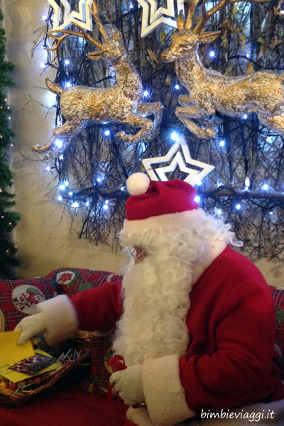 Tuttavia non c’è molta ressa per fortuna, quindi riusciamo presto a raggiungere il nostro amico vestito di rosso e con la grande barba bianca, che fa accomodare Chicco accanto a lui sul divano e si fa consegnare la letterina che mette al sicuro in un grande cesto.
