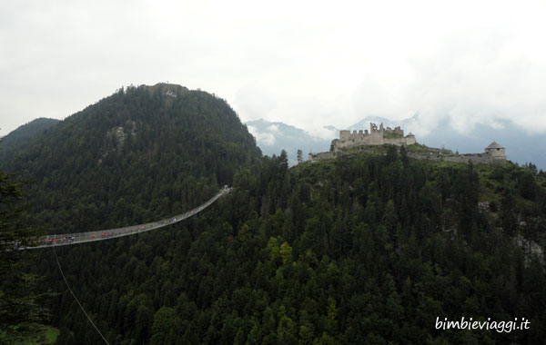 La prima tappa del nostro viaggio però è stata Reutte, in Austria, dove si trova la Highline179. Si tratta del ponte sospeso in stile tibetano pedonale più lungo del mondo: è lungo 400 metri e largo 1,2 metri e collega due monti sui quali sorgono le rovine del castello di Ehrenberg ed il Fort Claudia.