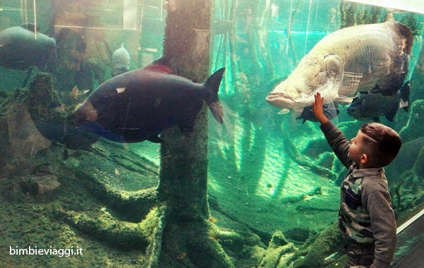 Saltando direttamente a questo livello (il -4 ospita sale congressi) si arriva a quello che probabilmente è stata la nostra parte preferita del Museo, ovvero il piano dove i bambini hanno iniziato a correre come schegge impazzite e a momenti ce li perdevamo tutti. Sicuramente la zona che più di tutte ha attirato la loro attenzione è quella dove è stata ricreata una vera e propria foresta amazzonica, visibile sia nella sua versione “subacquea” che in modalità terra emersa: pesci, tartarughe, serpenti, rane e molte altre specie autoctone, rigogliosa vegetazione inclusa ovviamente.