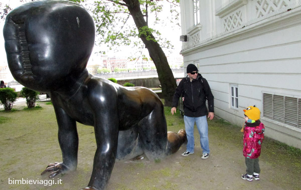 Se avete bimbi “camminatori”, salite sulla via Trziste: al numero 9 c’è l’Hotel Aria, che da fuori sembra di poco conto, ma provate ad andare a vedere la hall; se ne avete ancora, arrivate fino all’Ambasciata Tedesca e fatevi spiegare dove si può vedere la scultura di David Cerny “Quo Vadis?”, in memoria delle migliaia di tedeschi dell’est che nei giardini di questo palazzo hanno accampato nell’estate del 1989.