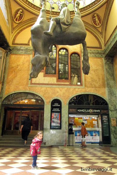 Nel pasaz Lucerna c’è il cavallo al contrario, mentre all’esterno del cc Quadrio c’è la testa di Kafka.