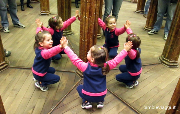 Ridiscesi, ci siamo diretti subito al Labirinto degli Specchi. Qui siamo tornati bambini: Laura si è divertita molto, ma forse noi di più!