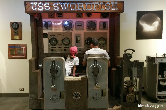 Inutile dire che si tratta di un’esperienza molto bella per i bambini (un po’ meno per le mamme claustrofobiche, che possono evitare di pagare il biglietto!), visto che si può entrare dentro ad un vero sottomarino, ancora attrezzato ed arredato con cuccette-letto, cucine, cabine di pilotaggio e veri missili!