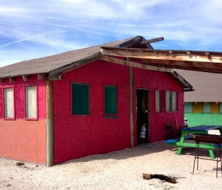 Ci fermiamo più a nord, nello splendido contesto di Bahia Concepcion. In cerca di quiete assoluta dopo la movida della notte precedente, troviamo questa volta rifugio in una casina dai colori pastello direttamente sulla spiaggia a Punta Chivato, un luogo dall’atmosfera intima e tranquilla – tre cuori e una capanna. Vi giungiamo grazie a delle indicazioni sulla strada principale che ci invitano a deviare, fino ad arrivare in riva al mare.