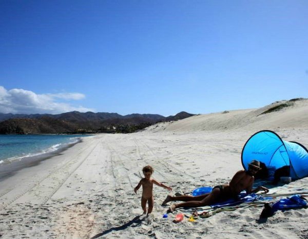 Con un sospirato “torneremo”, ci accontentiamo alla fine di una bellissima mezza giornata e continuiamo il viaggio verso nord, sostando in seguito nella piacevole Los Barriles, dove per la prima volta ci sorprenderà la semplice, fresca e gustosissima cucina di mare messicana della Baja, approvata subito dalla nostra piccola compagna di viaggio.