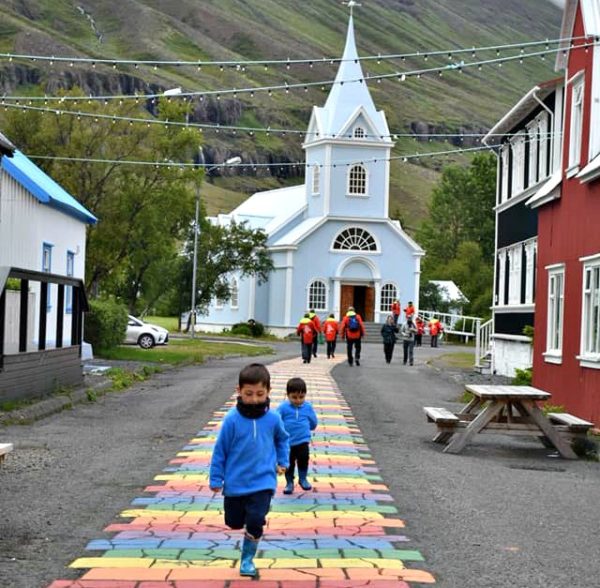 La strada per giungere al fiordo è piuttosto impervia, sterrata e con tornanti a strapiombo (il papà ha avuto modo di divertirsi alla guida). Abbiamo fatto anche un giro della piccola cittadina adiacente al fiordo e visto delle strane teste di pesce essiccate che emanavano un tanfo disgustoso, e chiaramente ai miei figli sono piaciute un sacco.