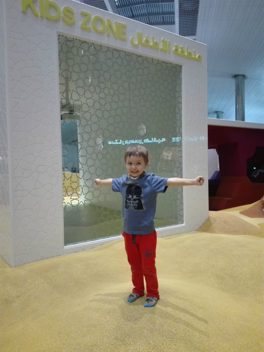 Partiamo quindi il 23 agosto da Venezia, per atterrare dopo circa 6 ore, all’aeroporto di Dubai. Come ci era stato consigliato nel gruppo facebook Famiglie Globetrotter, abbiamo cercato l’area bimbi per far sgranchire Alberto in vista delle successive 8 ore di volo.