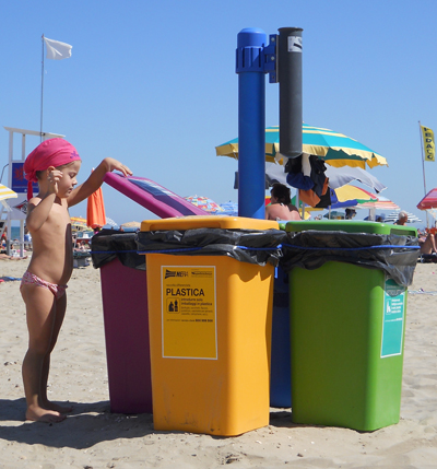 Innanzitutto la pulizia della spiaggia libera, nella quale sono presenti numerosi cestini per la raccolta differenziata dell’immondizia (carta, plastica, vetro, indifferenziata e sigarette): a parte qualche cicca, non ho visto rifiuti a terra ed era buffo vedere i bimbi che si divertivano a buttare le cose nei vari cestini colorati!