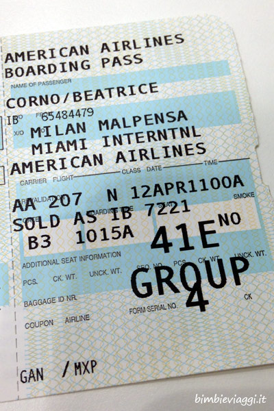 - volo American Airlines diretto Malpensa-Miami (aereo vecchiotto, senza monitor personale, nessuna attenzione per i bimbi – diciamo, santo Ipad visto che entrambi i voli sono stati diurni)
