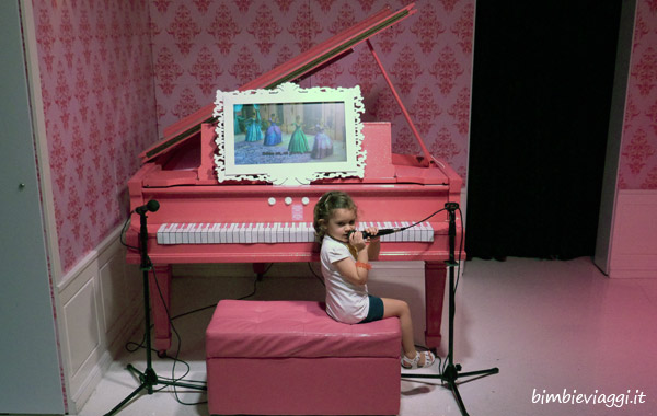 Si è aggirata per le stanze (cucina, salotto, bagno, camere ecc), si è atteggiata un sacco, si è sentita proprio Barbie (con un gran cervello eh si intende… se no mi viene l’ansia!), si è divertita con i giochi interattivi (molto carini davvero!) e per finire, visto che -per la gioia immensa di papà Ale- avevo comprato un biglietto VIP, è stata truccata, ha scelto un vestito, fatto una mini prova e una vera e propria sfilata con musica e book fotografico!