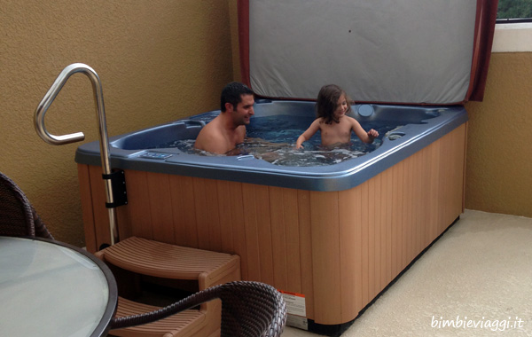 Una volta giunti ad Orlando, ecco la prima sorpresa! Sapevo di aver prenotato in un resort (Encantada Florida) composto da casette, ma non pensavo che fossero vere e proprie villette a schiera, indipendenti e dotate di ogni comfort: dal locale lavanderia con asciugatrice e lavatrice, cucina iper attrezzata, patio con lettini e idromassaggio privato (che abbiamo sfruttato per rilassarci dopo aver mangiato, con le mie cenette cucinate nella “mia” super cucina!), 2 camere da letto e tre bagni…prenotata su booking.com a prezzo più basso rispetto ad un semplice hotel. Inoltre dista solo 10 minuti dal parcheggio dei parchi Disneyland!