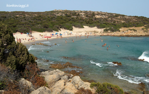 Si può raggiungere comodamente in auto (parcheggio a pagamento) oppure attraverso un bel sentierino panoramico che parte da Su Portu. La spiaggia è grande, la sabbia chiara e l’acqua limpida, azzurra e bassa. In parte è libera e in parte è attrezzata e vi si trovano anche un bar e un ristorante.