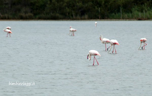 Alle spalle della spiaggia si trova uno stagno con i fenicotteri.