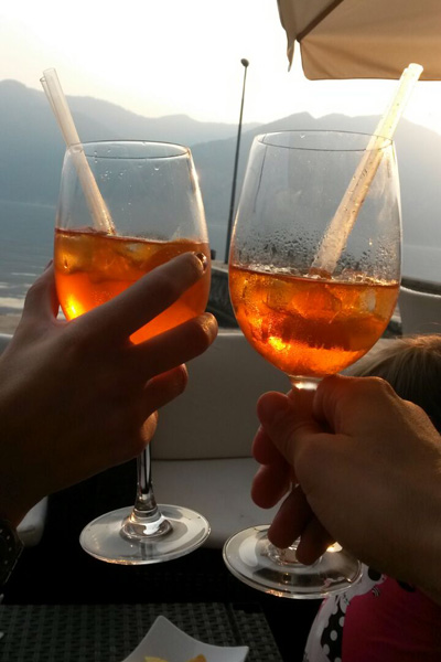 Qui, mentre la Tatina sgranocchia qualche salatino e divora due grosse olive verdi, noi due ci concediamo un fresco e rilassato spritz….Cin cin al Lago d’Iseo!