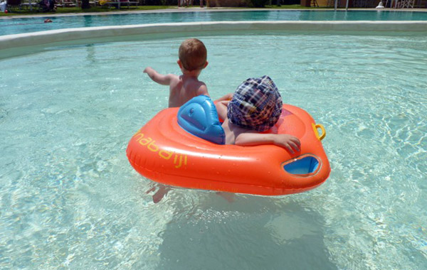 La sala ristorante si affaccia sulla bella piscina, il centro del resort, adatta a grandi e piccini; una parte infatti è alta circa 50cm, ed anche i più piccoli possono sguazzarci senza problemi: i miei si divertivano moltissimo a giocare lì dentro, ed il grande trascinava il piccolino dentro il salvagente…ci hanno veramente perso le ore!