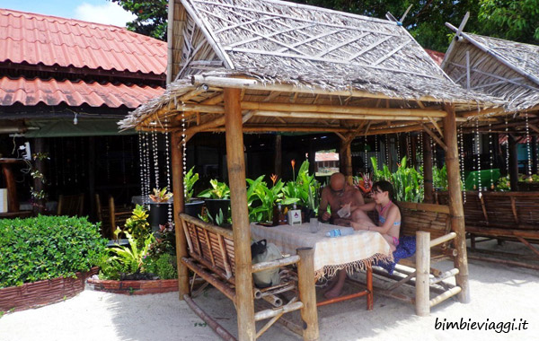 Andiamo soltanto a visitare Bottle beach, tappa obbligata in quanto è definita la spiaggia più bella, raggiungibile agevolmente soltanto via mare: ha un’acqua verdissima, almeno così era quando siamo andati noi col cielo leggermente velato (ma ho visto foto che la mostravano di un celeste maldiviano), ed ha un paio di resort e ristorantini sulla spiaggia tra cui uno dove mangiamo ottimo cibo Thai..