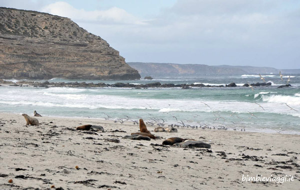 I leoni marini non li vedrete da una barca o con un binocolo ma scendendo sulla loro spiaggia nella Riserva Naturale di Seal Bay. Potrete stargli veramente a pochi metri di distanza: l’importante è rispettare sempre sia gli ambienti che gli animali, quindi guinzaglio per i bambini 😉
