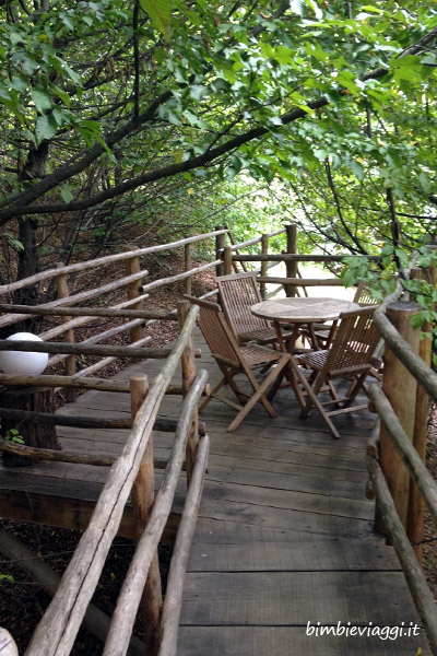 Una volta varcato il cancello d’ingresso è iniziata la favola per la nostra Bea (e anche per noi naturalmente)…mai dimenticherò i suoi passetti veloci che si arrampicavano per i vialetti del bosco, per scoprire la nostra casetta, e i suoi occhietti pieni di meraviglia una volta giunti ai piedi del “nostro” albero!
