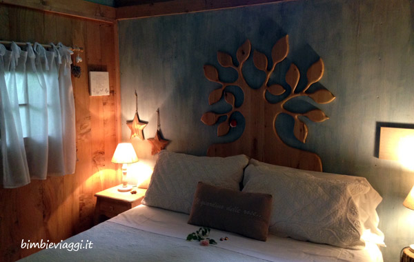 Un cancellino ed una comoda scala portano al terrazzino e poi eccola…la casetta! Interamente in legno, composta da camera, bagno con doccia (una delle migliori docce della mia vita) e soppalco (imperdibile… infatti laBea ha deciso immediatamente che a dormire sul soppalco sarebbe stata lei), arredata con gusto impeccabile in ogni minimo particolare, si respira proprio che nulla è stato messo li caso, ma tutto frutto di amore e passione.