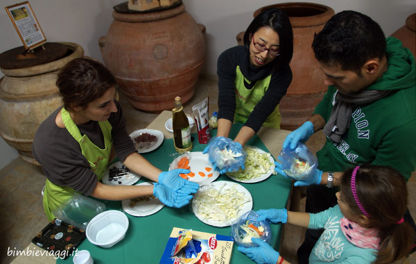 In occasione di Frantoi Aperti, poi, abbiamo avuto la possibilità di partecipare ad un particolarissimo laboratorio di cucina con Mariangela Nuccio di Cucinoteca (Milano) e Machiko Tateno di Kitchen Nippon, una famosa chef giapponese che ha unito per l’occasione la cucina tipica con l’olio d’oliva (memorabili i suoi momi momi alle verdure, che sono ormai diventati il tormentone di famiglia!)