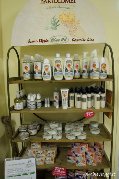 In questa grande azienda è possibile non solo degustare e acquistare ottimo olio extravergine, ma si possono trovare anche tanti prodotti e gadget derivati dall’olio d’oliva, come creme per il corpo, salse, ecc…. (indovinate quante ne ho comprate! 😉 )