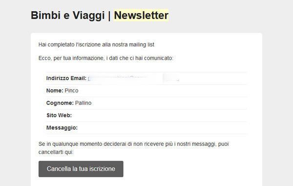 - nel giro di qualche minuto riceverai all’indirizzo indicato un’email che ti chiede la conferma dell’iscrizione.