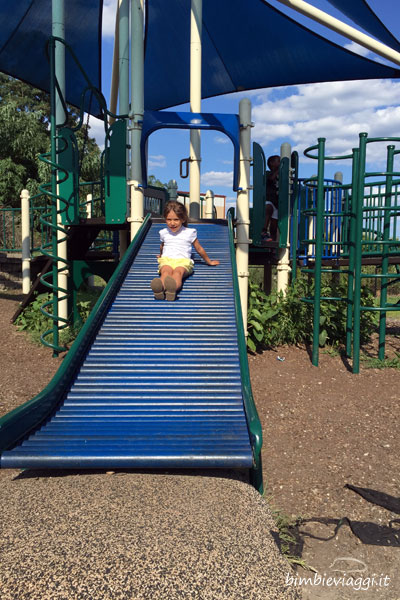 Poco distante, a NORWALK c’è lo Stepping Stones Museum, un museo per bambini. Purtroppo siamo arrivati tardi e abbiamo scelto di non entrare (chiude alle 17 e non costa pochissimo!), però ci siamo fermati al parco davanti al museo. Tutto disegnato per essere vissuto da bambini disabili… davvero impressionante quanto qualche piccolo accorgimento renda il parco alla portata di TUTTI.