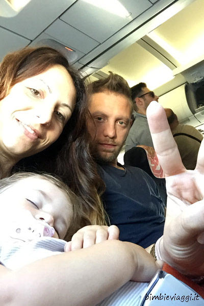 Anche questo volo è andato molto bene. Dopo il decollo ci è hanno dato la culla dove Amelia poteva mangiare, giocare e dormire, lasciando anche noi più liberi di muoverci.