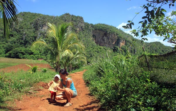 L’indomani andiamo a piedi alla scoperta della valle, dopo un veloce giro in paese, durante il quale conosciamo un ragazzo cubano col quale ci accordiamo per fare l’escursione al mare il giorno successivo. Chi ha la fortuna di avere un’auto a disposizione ne fa sicuramente un piccolo business, e nella zona vengono offerti numerosi passaggi per visitare la valle, e recarsi ai due bellissimi cayos, Jutias e Levisa, sempre per cifre oneste. Ci carichiamo Violante sulle spalle e appena fuori il paese, ci imbattiamo nella bella Finca di Raul Reyes, una fattoria con diversi tipi di coltivazioni dove poter assaggiare frutta, caffè, fumare un puro o sorseggiare dell’ottimo rum.