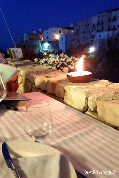 Se penso a momenti indelebili passati con la mia famiglia non posso non ricordarmi della cena a Polignano, Da Donna Gina, con pesce crudo per noi, orecchiette per Bea e magnifica vista, a picco sul mare sui fianchi della Lama Monachile.