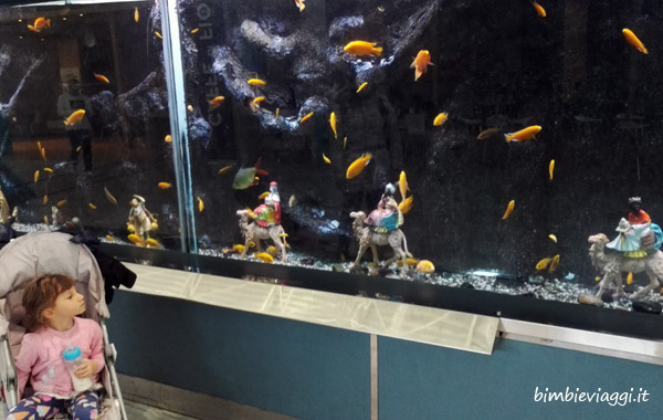 L’aeroporto è davvero confortevole, soprattutto per i bambini. A partire dall’entrata dove c’è un grande acquario popolato per la maggior parte da pesci rossi. Noi ci siamo stati per le vacanze di Natale e all’interno era stato costruito il presepe con i Re Magi sui cammelli.