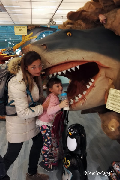 Superati i controlli, ci sono diversi negozi per bambini abbastanza caratteristici focalizzati sul mare e i suoi abitanti. Qualcuno di essi mette a disposizione dei giochi per provarli e questo permette di trascorrere qualche mezz’oretta di divertimento.