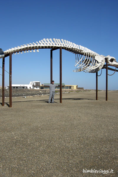 La strada costiera ci ha regalato scorci suggestivi sulla prospicente costa marocchina, sul mare cristallino, sulle saline, fino a che un gigantesco scheletro di balena ci ha imposto una sosta. E’ infatti assodato che numerosi cetacei vivano stabilmente nelle acque che circondano l’arcipelago canario, sia per la ricchezza dei suoi fondali che per la temperatura del mare. In questo caso la carcassa di una balena spiaggiata è stata conservata e messa in bella mostra per i curiosi visitatori.