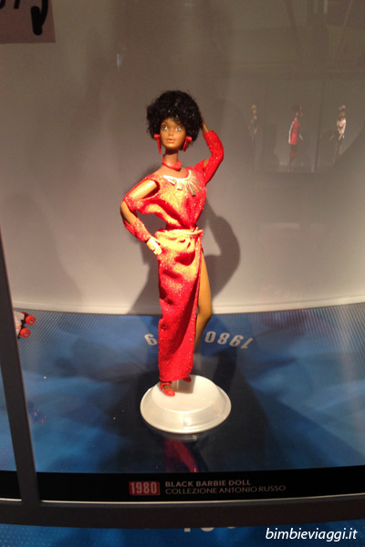 Per esempio, nella prima sala Bea ed io abbiamo cercato, invitate dal telefono, la prima Barbie con cui giocava la tua mamma, e con mia grande commozione l’abbiamo trovata: una ricciolina afro con un bell’abito rosso, nata nel 1980, che mi era stata regalata in occasione del mio primo Natale!