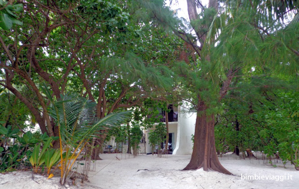 Byadhoo è un’isola meravigliosa e particolare perché molto selvaggia, ci sono alberi immensi, liane, al suo interno sembra di essere in una giungla. Gli alloggi sono in palazzine a 2 piani, ne avevo lette di tutti i colori prima di partire, ma devo dire che noi ci siamo trovati bene, la camera era molto grande, pulita, essenziale e, dal mare le palazzine restano dietro la vegetazione e non si vedono proprio..