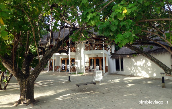 Le camere sono dei bungalow doppi col caratteristico tetto di paglia; il ristorante è all’aperto ed è tutto in legno e ci sono 2 bar sulla spiaggia. Anche qui siamo stati molto bene: per il cibo Byadhoo è meglio ma, essendo anche qui abbastanza vario, si trovava sempre qualcosa da mangiare. Per quanto riguarda l’intrattenimeno, per i bambini c’è il biliardo, il biliardino, le freccette e una bella sala di ristoro.