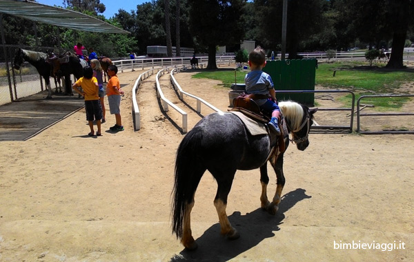 Il Griffith Park è un bellissimo parco che ospita giochi e attività per grandi e piccini tra cui zoo, una giostra di cavalli, passeggiate a cavallo, sentieri da percorrere a piedi e un osservatorio astronomico. Noi abbiamo iniziato con un giro su un trenino che attraversa un villaggio di nativi americani, il tutto graziosamente ricostruito. Accanto al trenino i miei bambini hanno per la prima volta provato l’emozione di cavalcare dei pony…