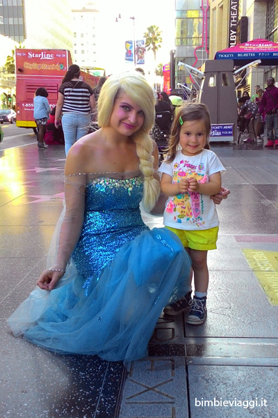 A Hollywood trascorriamo il pomeriggio tra personaggi travestiti da Spiderman, Minions, Hulk, Jack Sparrow e tanti altri… E quando intravediamo Elsa di Frozen mia figlia è letteralmente colta da una gioia incontenibile… Ancora oggi racconta ad amici e maestre che in America ha incontrato Elsa “e menomale che non l’ha ghiacciata”!