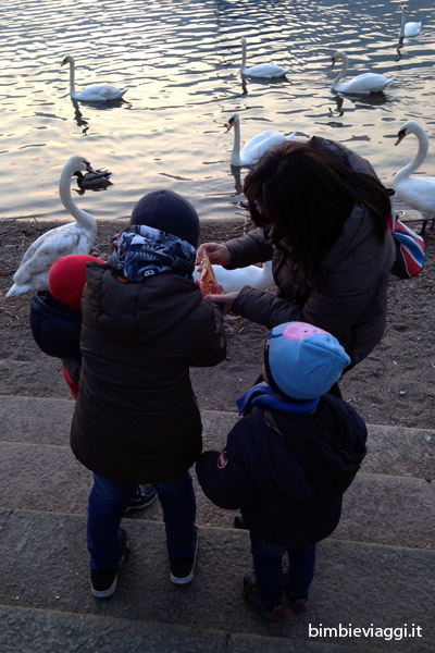 Ebbene sì, se andate a Lecco con i bambini, non potete dimenticare un sacchetto di pane secco per sfamare cigni, papere e chi più ne ha più ne metta.