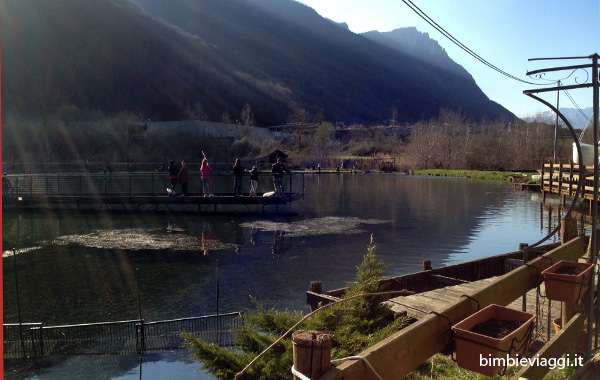 Questo laghetto, che io frequento da quando ero bambina, è un posto magico, non solo perché si pescano le buonissime trote di montagna (attività che diverte moltissimo i bambini…e anche i papà), ma anche perché ci sono recinti con gli animali della fattoria (cavalli, caprette, pecore, asini, galline, conigli…), una bella area giochi, il bar dove rilassarsi mangiando un gelato e perfino la casa del vecchio pescatore, dove è possibile vedere mobilio e utensili di un tempo, utilizzati appunto dai pescatori.