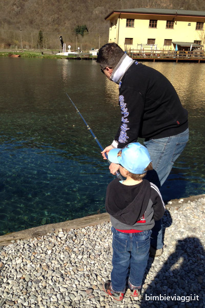 La giornata di sabato ci ha accolto con uno splendido cielo terso e un caldo sole primaverile. I programmi erano di portare Chicco in funivia ad Artavaggio a fare qualche discesa con il bob, ma visto che non era in splendida forma, abbiamo aspettato qualche ora e, nel pomeriggio, abbiamo portato i bambini alla pesca sportiva di Primaluna (Via Fregera, 10, Primaluna, LC).