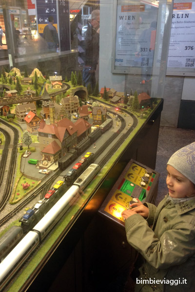 Appena entrati in stazione già gli occhietti di Bea brillavano alla vista di una stazione in miniatura, da poter comandare, inserendo un moneta da un euro, proprio come un vero capostazione, rispettando semafori e limiti di velocità.