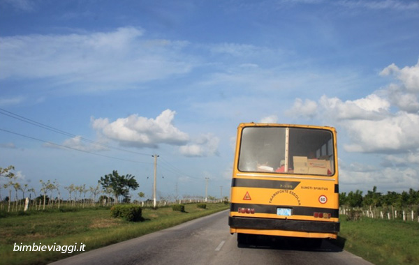 Cartina stradale alla mano, l’idea è ora quella di allungare fino alla non meno bella e di altrettanto fascino coloniale, così scopriremo, Sancti Ispiritus, ed esplorare le alture di Banao, prima di giungere a Trinidad. Lasciamo così la principale (e unica!) autostrada, la M1, e ci avventuriamo per vie secondarie – e terziarie – immerse in un verde rigoglioso, punteggiate di carretti, cavalli, auto di epoche passate e…vecchi scuolabus riconvertiti a qualsiasi altro nuovo e diverso scopo.